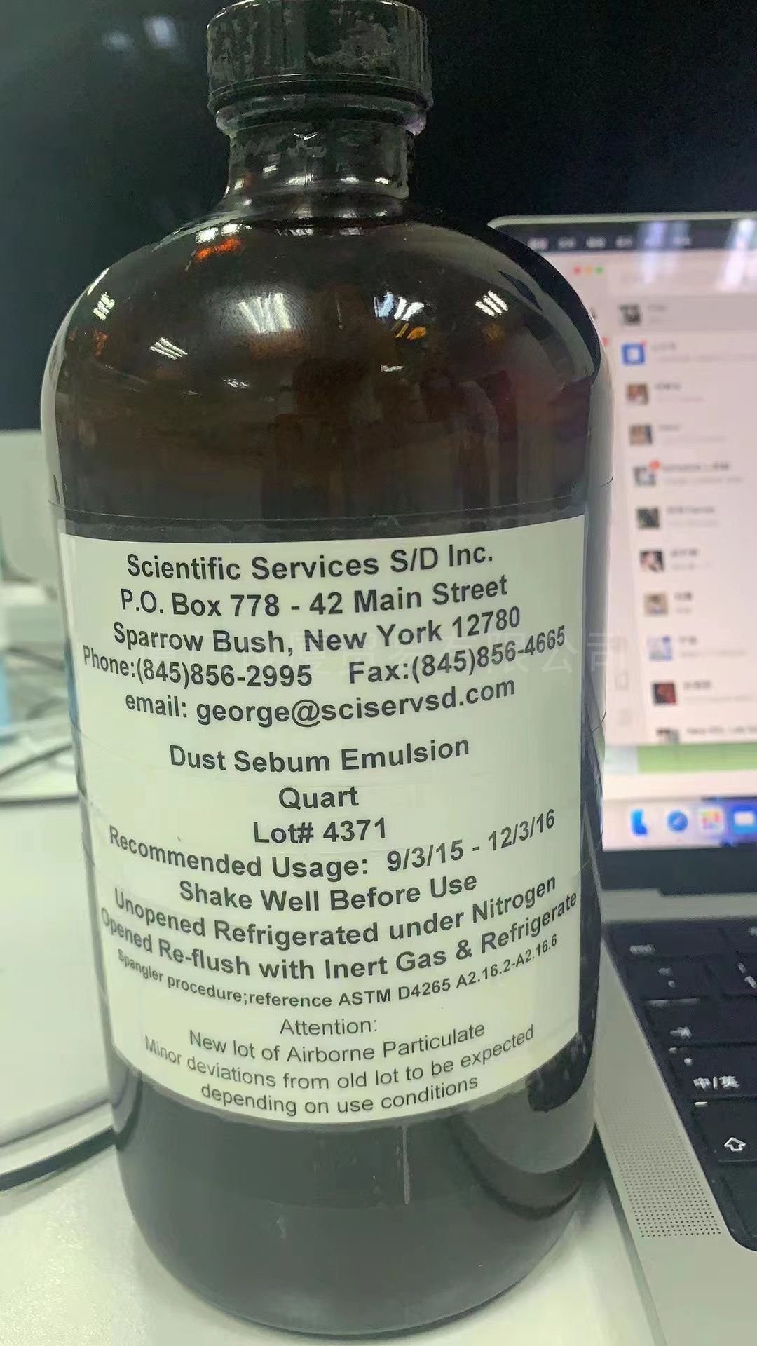 皮脂Synthetic Sebum是一种由皮脂腺分泌的油性分泌物,它遍布于头发和皮肤上,有防水的功能。Scientific Services S/D, Inc.公司按照ASTM D4265 A2 16.2配方制造一款人工皮脂。它是一种即用产品,为产品测试提供*靠性,重现性和便利性。
